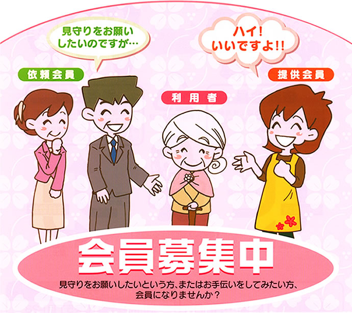 見守りをお願いしたい人(依頼会員)と支援を行いたい人(提供会員)が住民同士で支えあい、認知症になっても安心して暮らせる環境づくりをサポートします。